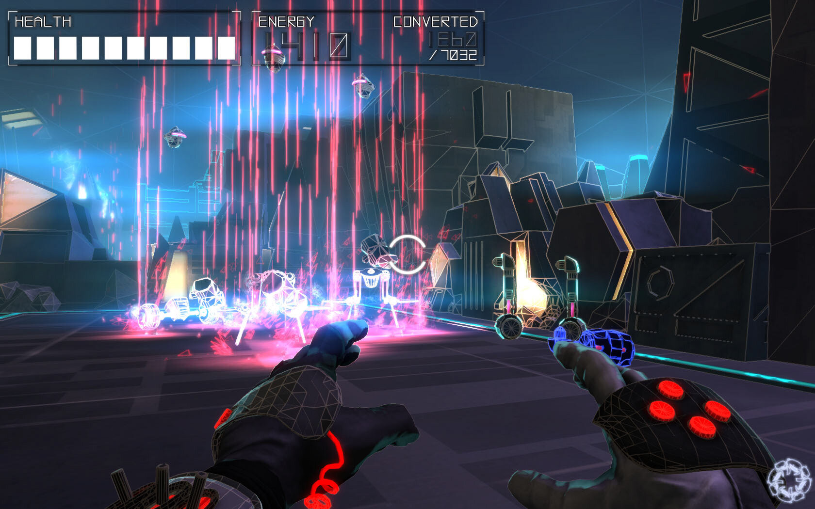 Use your hand to aim, throw robot parts and deliver powerful shock attacks!
